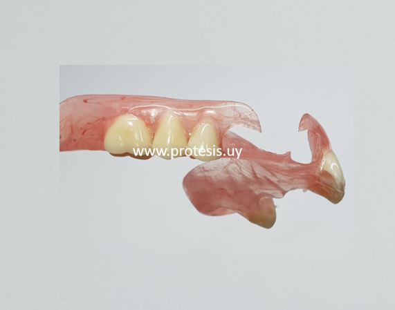 Prótesis dentales flexibles Uruguay, Para el caso de un maxilar superior esta foto muestra una prótesis dental flexible parcial. Prótresis dental flexible sin elementos metálicos