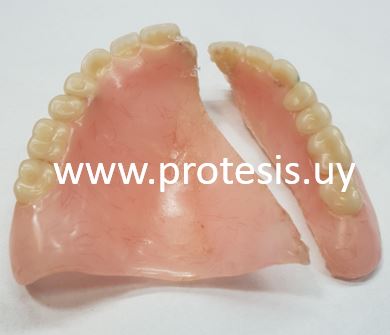 Prótesis dentales completas superior o inferior. Distintos tipos.