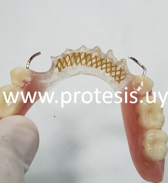 Estructuras internas de metal para reforzar la prótesis dental superior y la prótesis dental inferior.