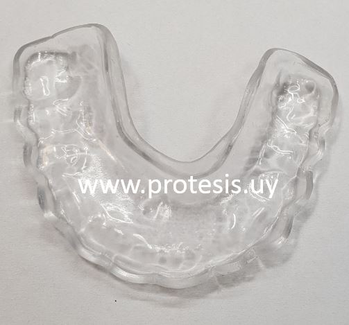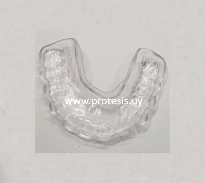 También se puede conocer como placa para descanso nocturno bruxismo (o también conocido como rechinamiento de los dientes durante el período nocturno)