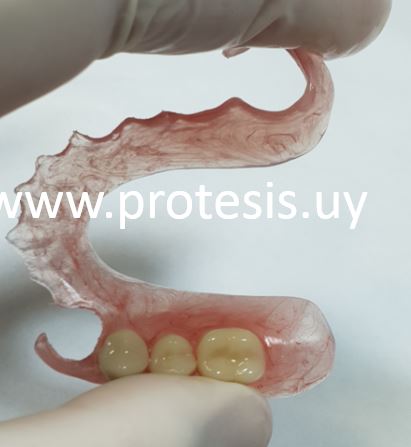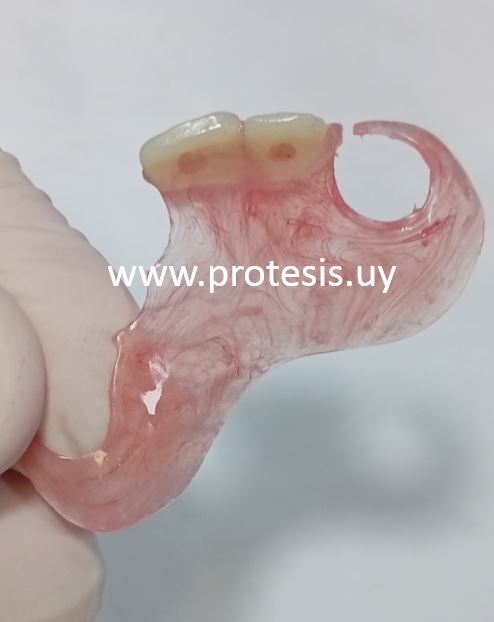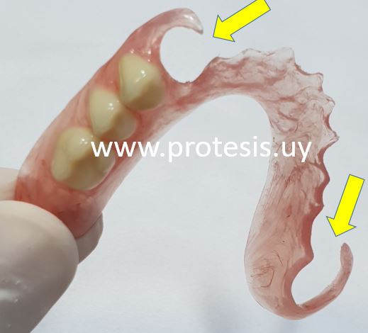 No, la prótesis flexible no tiene ningún elemento de metal, es decir no tiene una base de metal, ni tampoco tiene gancho de metal.