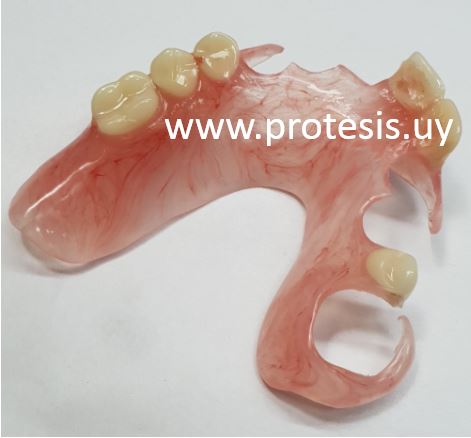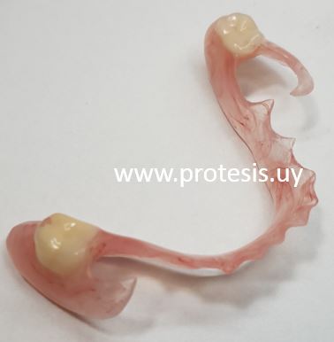 Para el caso de un maxilar superior esta foto muestra una prótesis dental flexible parcial.